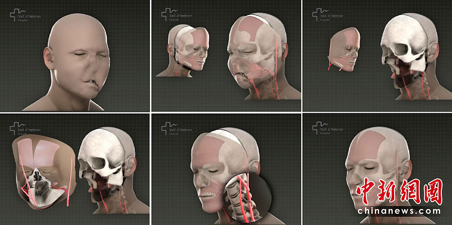 4月23日,由30位西班牙醫(yī)生組成的一個(gè)醫(yī)療小組表示,他們已經(jīng)成功進(jìn)行了世界首例完整面部移植手術(shù)。這項(xiàng)史無(wú)前例的手術(shù)是上個(gè)月為一名面部在事故中嚴(yán)重受損的年輕男患者進(jìn)行的。圖片來(lái)源:中國(guó)新聞網(wǎng)