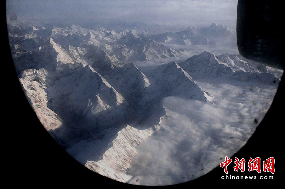 曙光里,機(jī)群飛越當(dāng)年紅軍長(zhǎng)征爬過(guò)的瀘定大雪山,在連綿的雪峰上隆隆飛翔,這是編織連接玉樹(shù)災(zāi)區(qū)救生航空網(wǎng)絡(luò)中,最重要堅(jiān)實(shí)的緊急救災(zāi)航線。