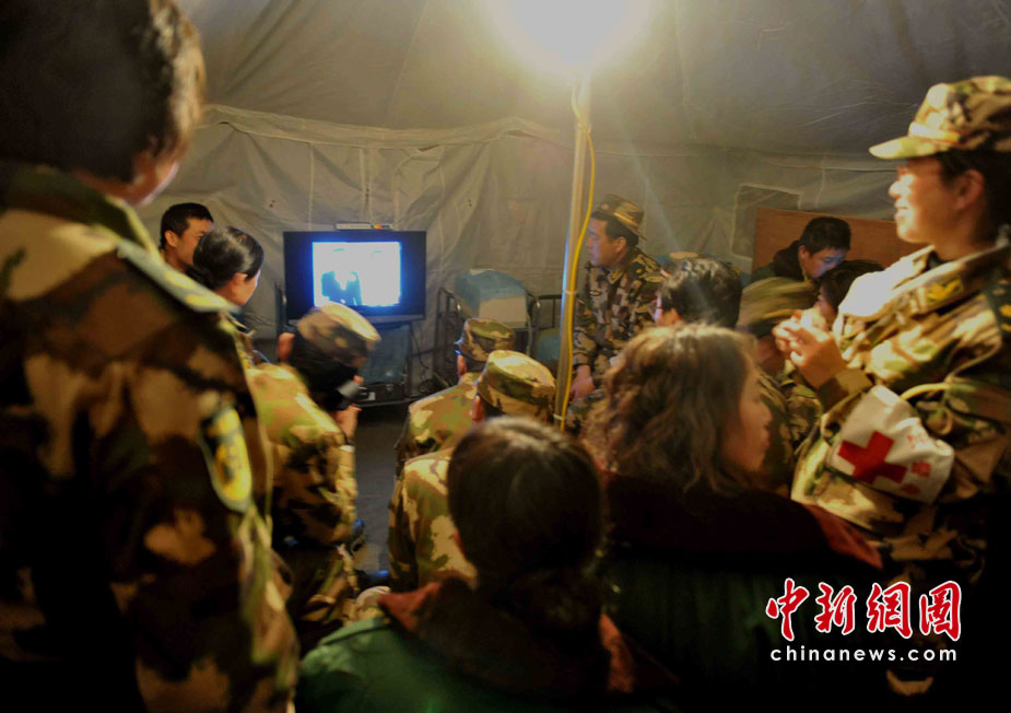 武警青海總隊玉樹支隊是最先投入抗震救災的先鋒部隊,地震發生時恰逢部隊出操,營房嚴重受損而官兵平安無恙。這里立即成為抗震救災的軍民和媒體的大本營之一,醫療救護隊和新型炊事車晝夜為軍民服務。集結在地震災區的各路部隊從4月低之前全面轉入安置群眾和災后重建,這里的的后勤已經得到基本保障。 中新社記者 賈國榮 攝