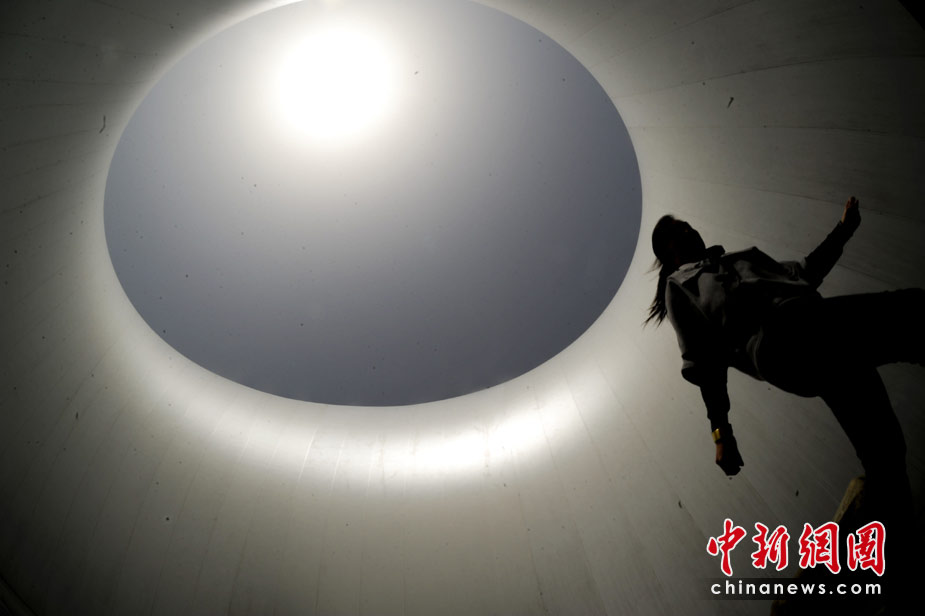 4月27日,一位女士走過上海世博園芬蘭館的圓形天井。中新社發 廖攀 攝