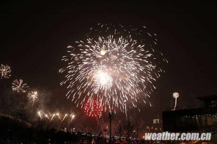 2010年4月27日,上海世博會開幕式彩排順利進行。圖為美麗的煙花。卞赟 攝