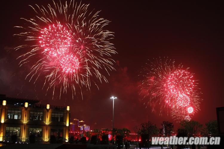2010年4月27日,上海世博會開幕式彩排順利進行。圖為煙花二重奏。卞赟 攝