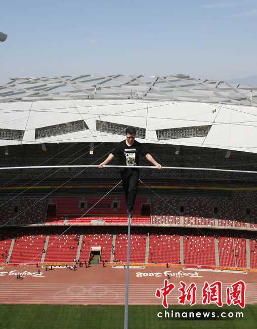 新疆高空王子鳥巢挑戰高空走鋼絲
