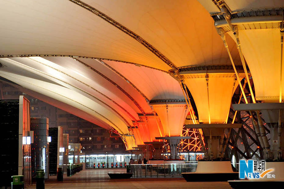 靜待開幕的世博園沉浸在一片暮色中,流光溢彩,給人無限遐想。從外灘到世博園,“夜”上海不斷延伸,讓人激情跳躍。圖片來源:新華網孫巍攝