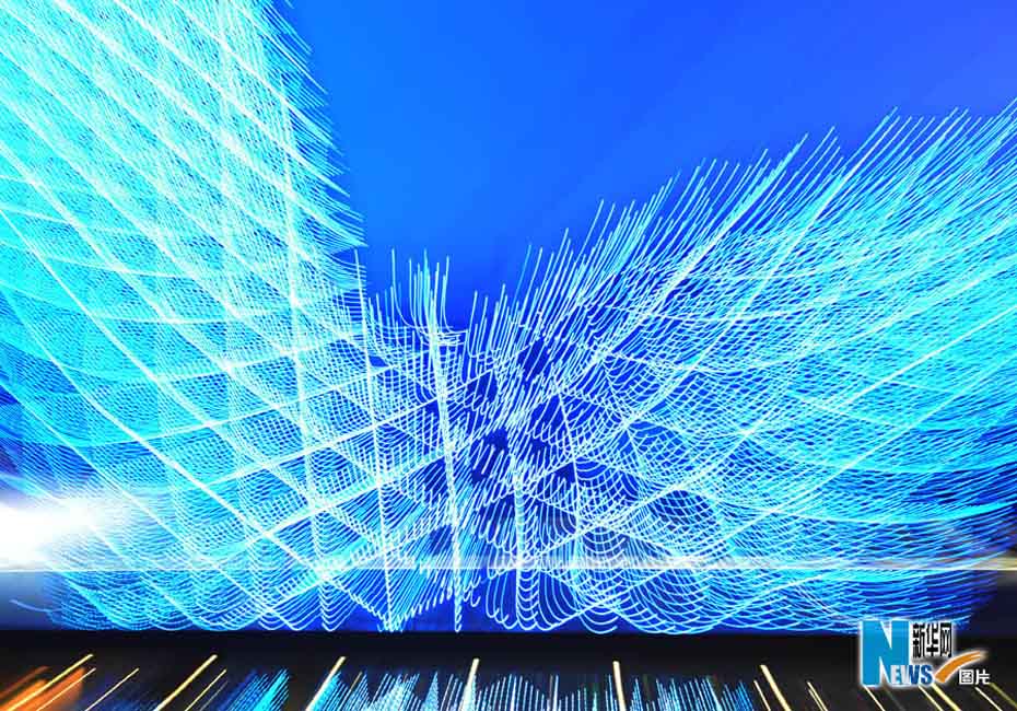 夜色下的世博園,迷離而夢幻。圖為世博軸陽光谷。圖片來源:新華網(wǎng) 郭毅攝