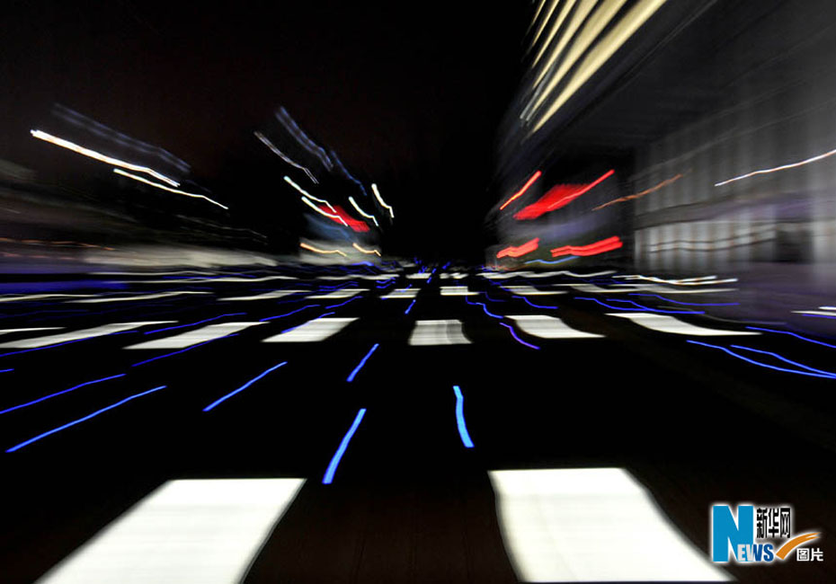 夜色下的世博園,迷離而夢幻。圖為媒體中心。圖片來源:新華網 郭毅攝