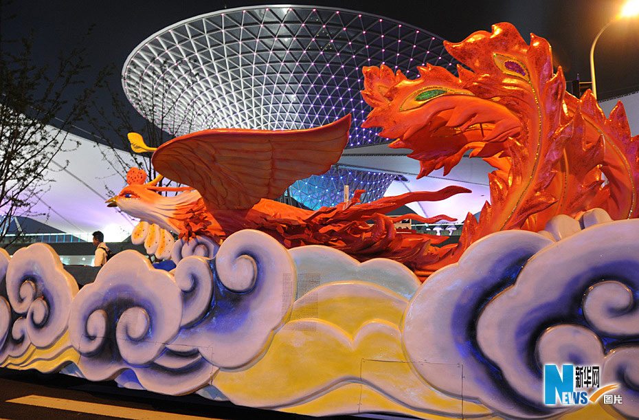 4月30日晚,舉世矚目的上海世博會開幕式將在黃浦江畔世博園區舉行。圖為29日晚,上海世博會“歡樂盛裝大巡游”在浦東區世博園內進行最后一次帶妝彩排。俞瑋 范云波攝