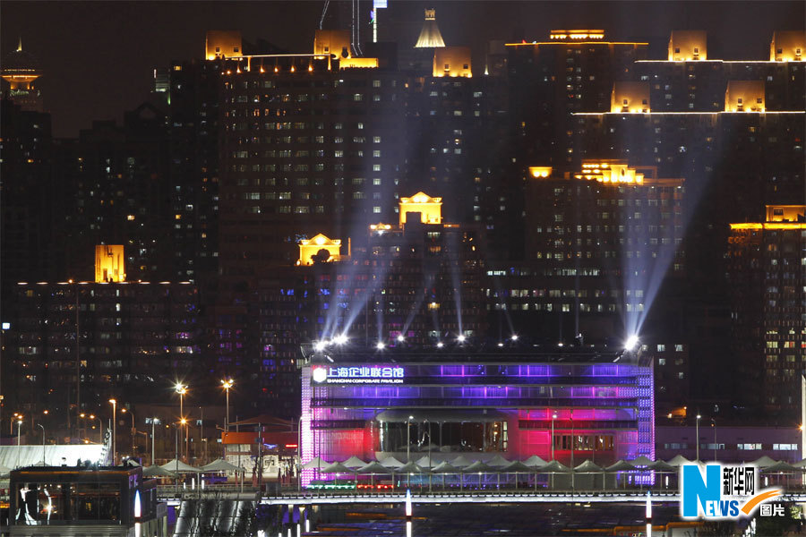 4月30日,中國2010年上海世博會開幕。圖為上海企業聯合館亮燈。裴鑫攝