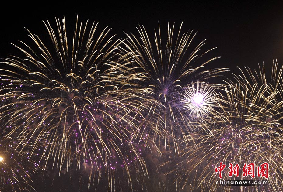 4月30日晚,2010年上海世博會開幕式在上海世博園世博文化中心舉行。21時28分,世博會焰火燈光表演開始。黃浦江兩岸綿延3.28公里同時奏響火樹銀花不夜天的華彩世博樂章。中新網記者 王紅綱 攝