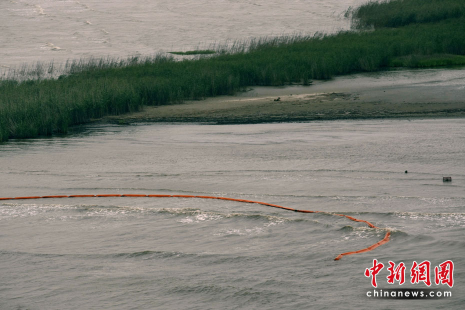 4月30日,在美國路易斯安那州海岸,為阻隔原油擴(kuò)散而設(shè)的護(hù)欄帶被海風(fēng)浪沖到岸邊。當(dāng)天,美國總統(tǒng)奧巴馬下令調(diào)查墨西哥灣石油鉆井平臺(tái)爆炸事件,以避免將來類似事件再次發(fā)生。平臺(tái)爆炸沉沒后泄漏的原油當(dāng)天已漂至美國沿岸。圖片來源:中國新聞網(wǎng)