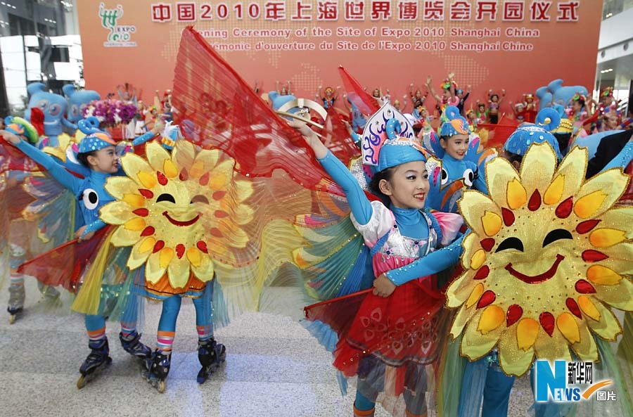 5月1日,中國2010年上海世博會開園儀式在上海世博園世博中心舉行。這是小朋友們在開園儀式上表演。裴鑫攝(新華網(wǎng))