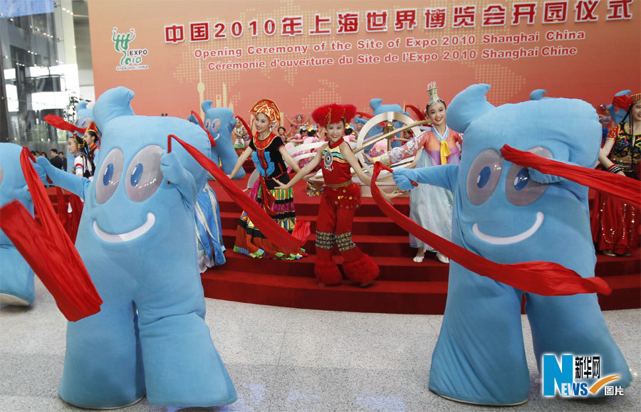 5月1日,中國2010年上海世博會開園儀式在上海世博園世博中心舉行。這是小朋友們在開園儀式上表演。裴鑫攝(新華網)