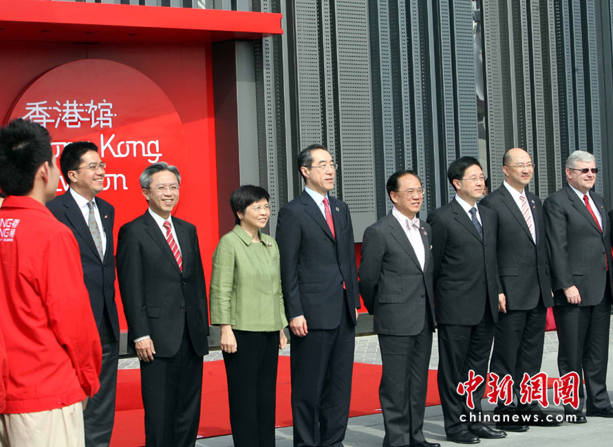 5月1日,上海世博園內的香港館開幕,香港特首曾蔭權(右四)率特區政府官員出席開幕儀式。中新社發 洪少葵 攝