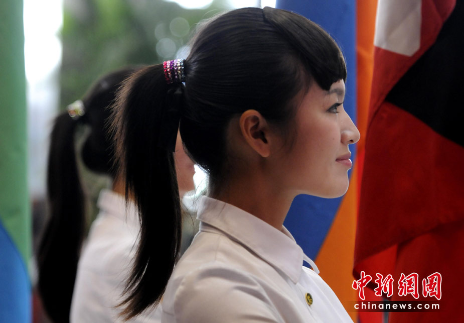 5月1日,2010年上海世博會(huì)正式開(kāi)園,英姿颯爽的女子旗手們參加清晨的儀式。中新社記者 賈國(guó)榮攝