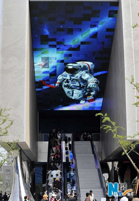 5月1日,上海世博會正式開園迎客,首批游客入園參觀。眾多游客前往位于上海世博園浦西園區的太空家園館參觀。 朱崢 攝