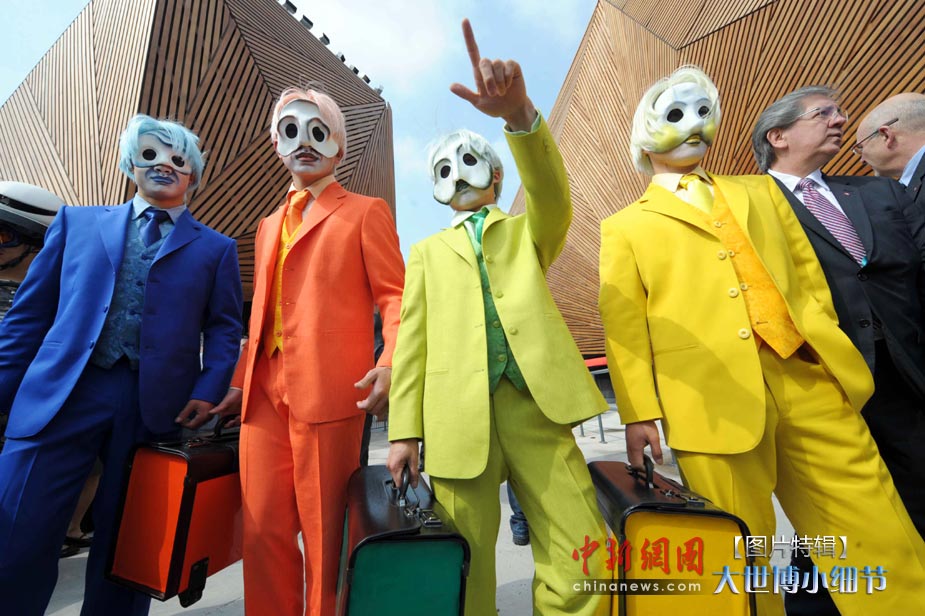 5月1日,上海世博會正式開園,當日有20萬人次的游客參觀了世博園。世博首日,許許多多的小細節(jié)都帶給人一種全新的體驗。圖為加拿大演藝人員幽默登場。中新社發(fā) 陳文 攝