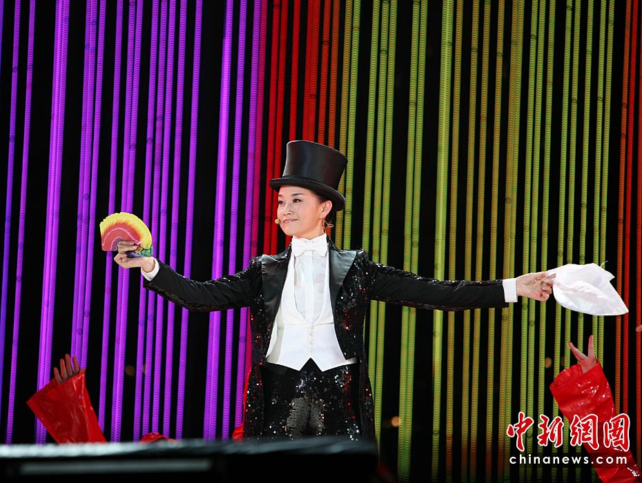 圖為宋祖英女扮男裝表演魔術。王保勝 攝