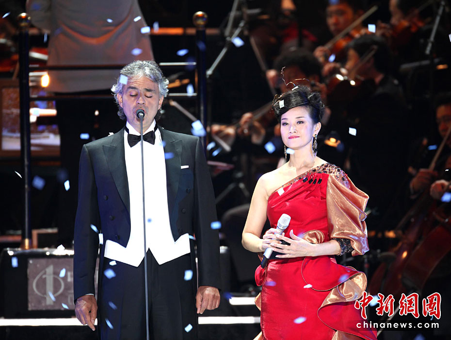 5月1日,著名歌唱家宋祖英在上海體育場舉辦“紅牛2010魅力中國——宋祖英上海體育場大型廣場音樂會”,這是她繼2009年鳥巢夏季音樂會之后又一次成功舉辦大型露天廣場音樂會。整場演出仍然沿用去年廣受好評的鳥巢音樂會形式,宋祖英與世界著名男高音歌唱家安德列·波切利、世界級鋼琴巨星郎朗、華語流行天王周杰倫以及著名指揮家余隆執棒的中國愛樂樂團等,組成強大的演出陣容,用音樂來展現“魅力中國”,也為上海世博會添上濃墨重彩的一筆。圖片來源:中國新聞網