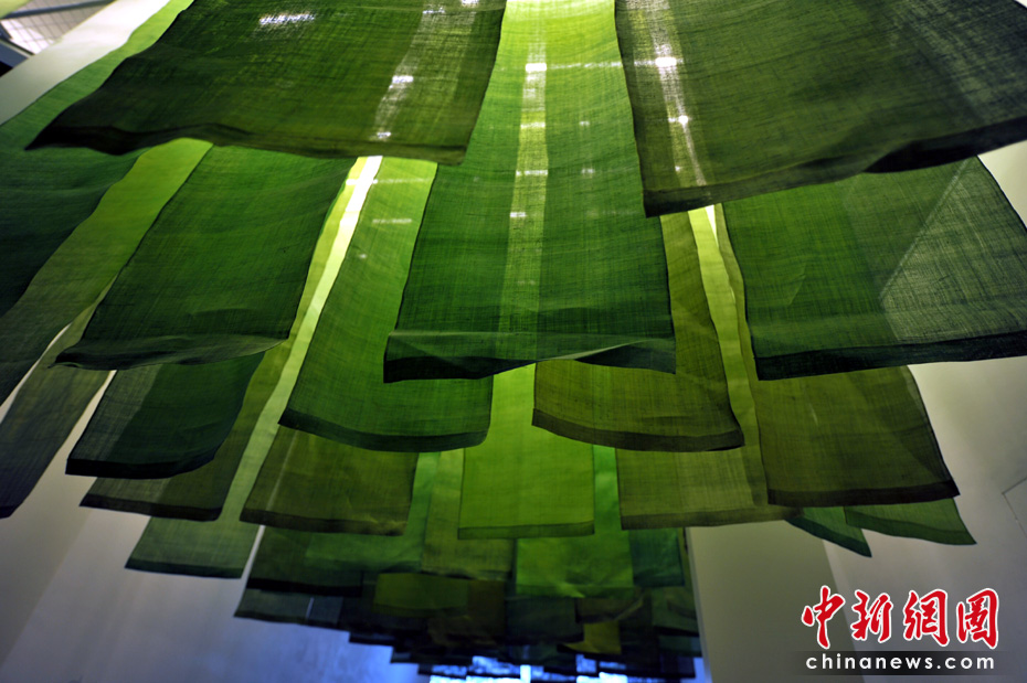 用天然染料染的麻布從天花板垂下,給人置身于美麗草原的感覺。中新網記者 王紅綱 攝