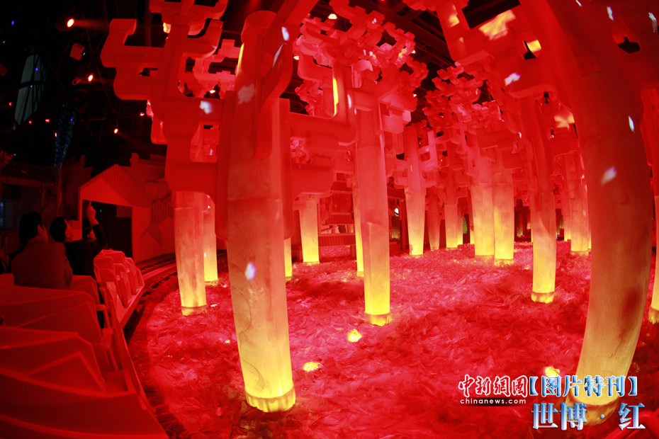 紅色象征著熱量與活力,紅色也象征著興奮與激情,在世博園區內游覽,總會有一抹濃艷的紅色闖入到記者鏡頭之中,讓世博變得更加火辣。圖為中國館內一角。中新社記者 盛佳鵬 攝