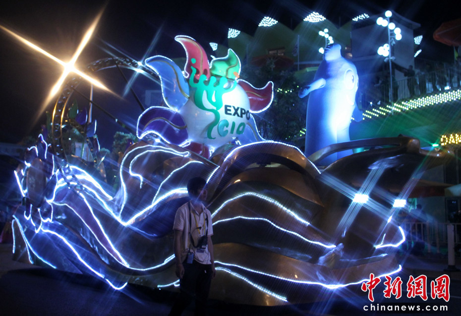 世博盛裝夜巡游 花車美女盡顯異域風情