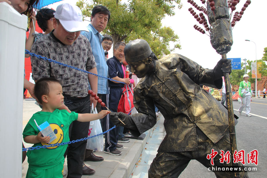 5月4日,上海世博會北京周花車巡游演員與觀眾互動。當(dāng)日,世博會北京周開幕。中新社發(fā) 蘇丹 攝