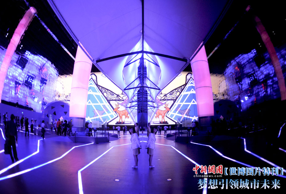 上海世博會(huì)城市未來(lái)館位于E片區(qū),館內(nèi)的展示以互動(dòng)方式開始,邀請(qǐng)參觀者暢想未來(lái)的城市,然后運(yùn)用影片、書籍和雕塑等方式,體現(xiàn)歷史上人們對(duì)未來(lái)城市的夢(mèng)想、設(shè)計(jì)與實(shí)踐,表明未來(lái)城市建立在今日挑戰(zhàn)的基礎(chǔ)上,并且暢想未來(lái)城市的各種可能,闡述推動(dòng)人類進(jìn)步永恒不變的精神元素。展望未來(lái)城市,一方面人類城市的種種現(xiàn)實(shí)、挑戰(zhàn)和危機(jī)推動(dòng)人們?cè)谒伎贾袑ふ页鞘械某雎罚硪环矫嫒祟惒恍傅膭?chuàng)新能力和科技的飛速進(jìn)步也把人們引向不可思議的未來(lái)城市。中新社記者 廖攀 攝
