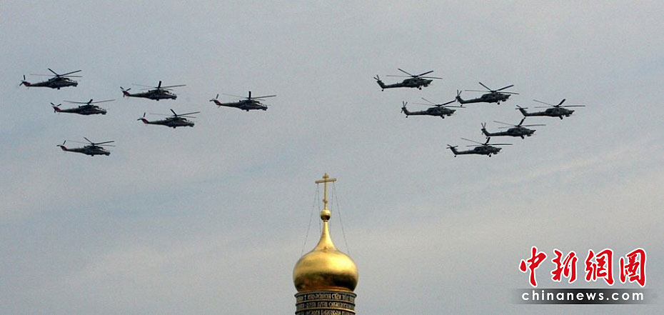 當地時間5月4日,在俄羅斯首都莫斯科,參加彩排的戰機編隊飛過紅場上空。俄羅斯將于5月9日隆重紀念衛國戰爭勝利65周年。圖片來源:中國新聞網