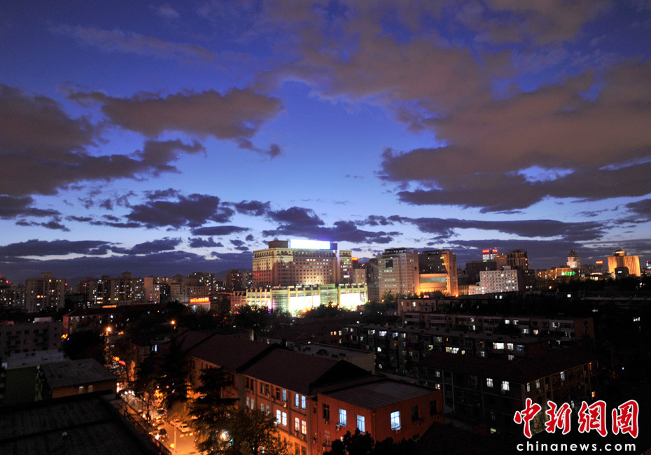 5月5日立夏,京城降雨今晨剛剛結束,霧氣伺機又起。傍晚時分,隨著四級北風的到來,京城天氣逐漸轉晴,霧氣慢慢消散天空彤云密布夜色瑰麗。中新網記者 金碩 攝