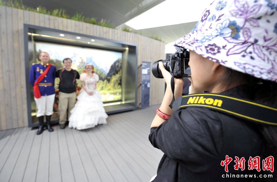 一進入館內(nèi),就是一系列德國地方風(fēng)情的圖片墻,成為游客拍照的絕佳取景角度,同時還有“王子”和“公主”能夠一起與游客合影。中新網(wǎng)記者 王紅綱 攝