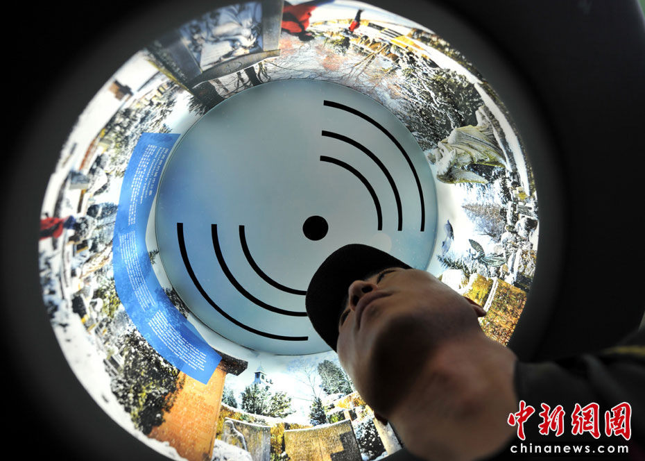 360度環繞視聽體驗,像個燈罩一樣,游客可以把頭伸進去,聲音效果的確不錯。中新網記者 王紅綱 攝