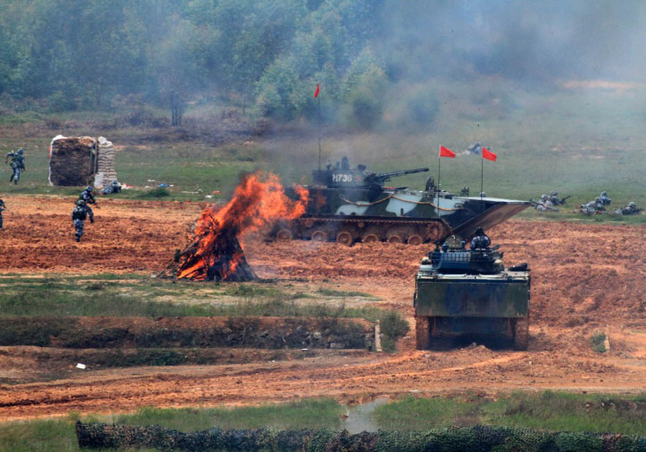 海軍陸戰隊在訓練場進行登陸作戰實兵實彈演練。圖片來源:新華網 查春明攝