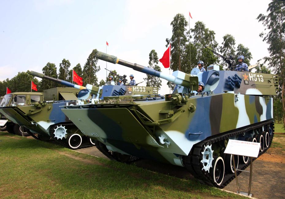 海軍陸戰隊兩棲突擊車在慶典儀式上進行展示。圖片來源:新華網 查春明攝