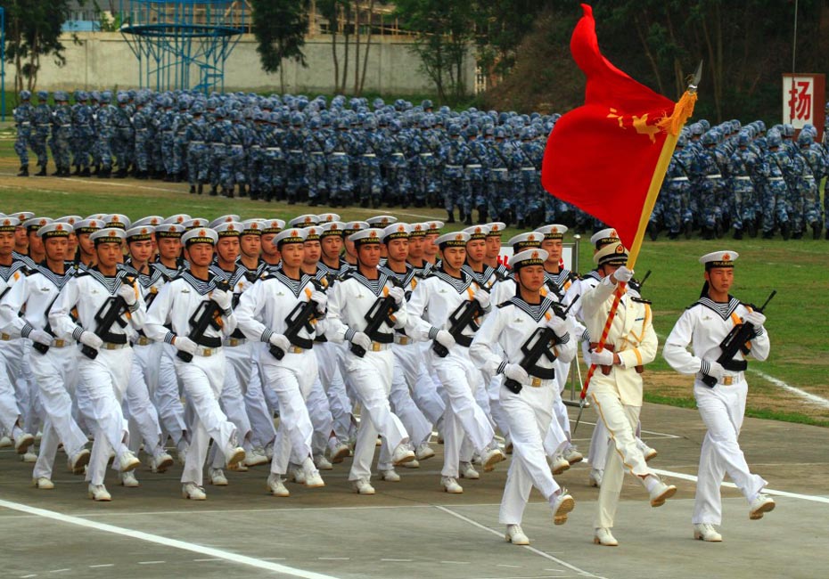 海軍陸戰隊儀仗隊通過主席臺。圖片來源:新華網 查春明攝