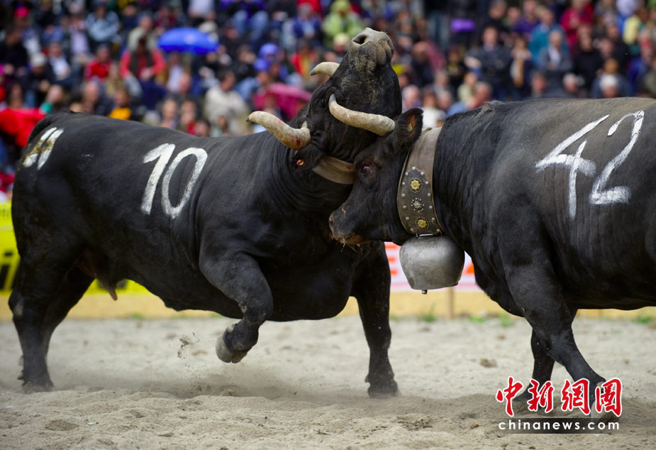 5月9日,在瑞士瓦萊州舉行了一年一度的斗奶牛大賽。這項(xiàng)發(fā)起于1923年的賽事是為了挑選牛群中最強(qiáng)壯的“奶牛皇后”。