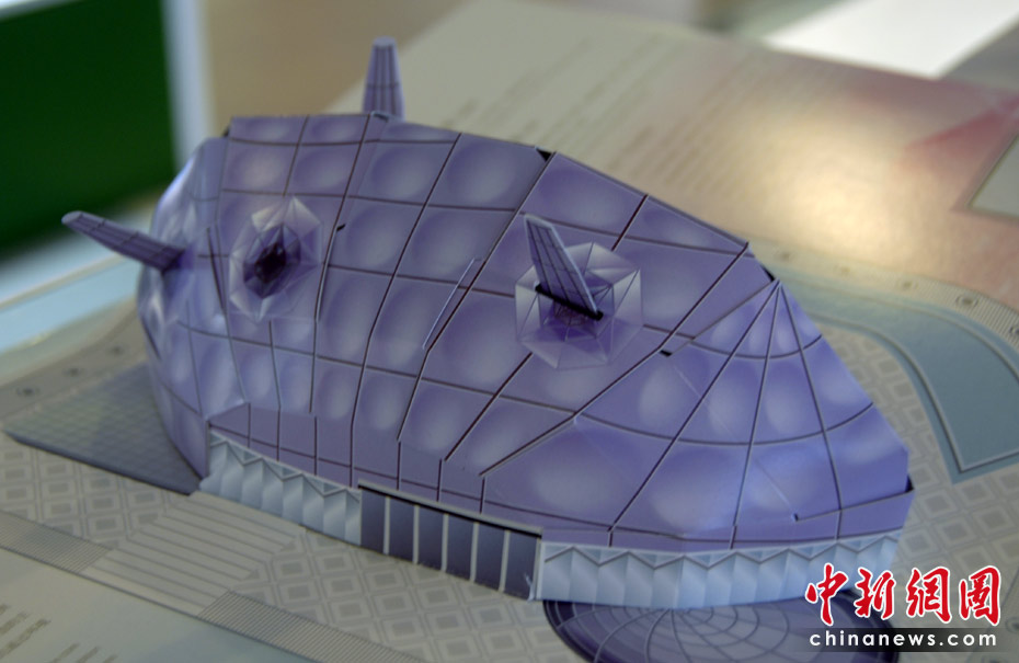 世博園區(qū)內(nèi)的特許商品店里,折紙場(chǎng)館惟妙惟肖,頗受游客的喜愛。圖為日本館紙模型。中新網(wǎng)記者 吳歆 攝