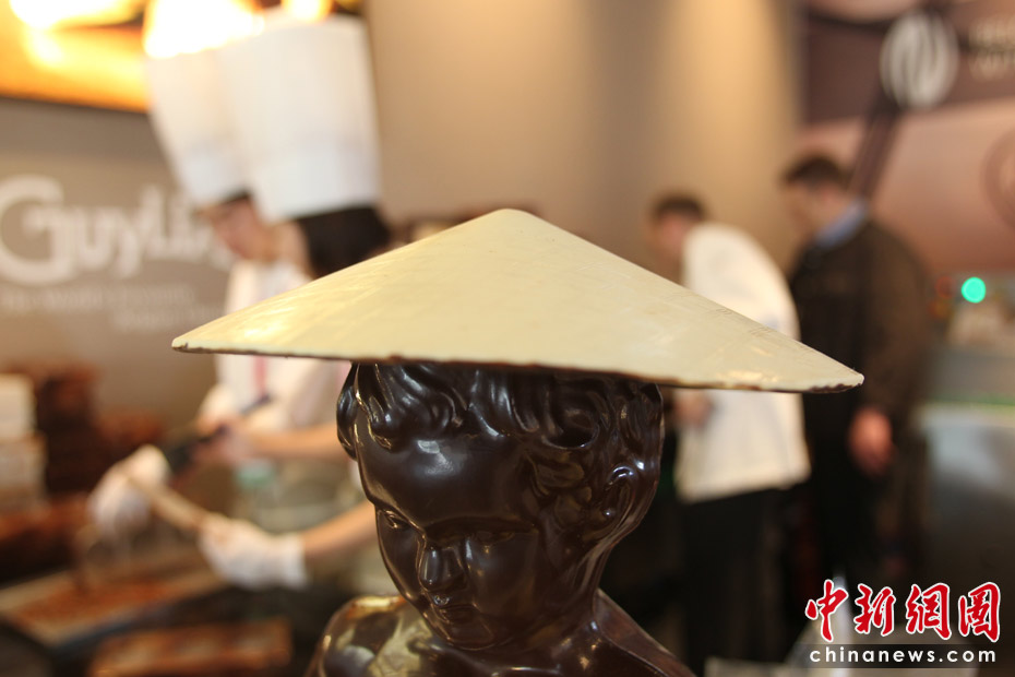 圖為比利時館內展示巧克力制作。 中新社記者 蘇丹 攝