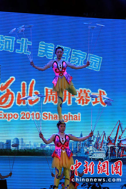 5月14日,上海世博會“河北活動周”在寶鋼大舞臺啟幕,戰(zhàn)鼓、旱船、拉花、草編、石雕、年畫、雜技、皮影戲……燕趙大地的傳統(tǒng)絕活一一登場。“河北活動周”自14日持續(xù)至18日,將圍繞“京畿神韻”的主線,向世界展示河北省的經(jīng)濟和藝術魅力,是繼直轄市北京、天津之后,第一個由省份在世博會上舉辦的活動周。中新社記者 殷春永 攝
