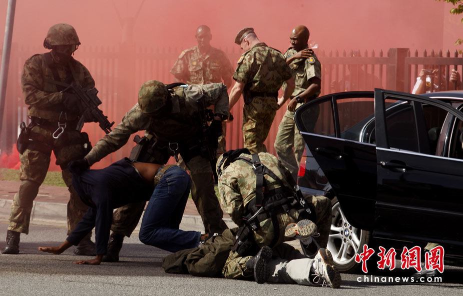 5月17日,南非約翰內(nèi)斯堡,警察舉行防暴演習(xí),為下個(gè)月舉行的世界杯做準(zhǔn)備。 圖片來源:中國(guó)新聞網(wǎng)