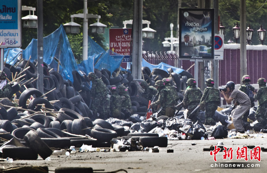 19日,發(fā)起驅(qū)散行動的泰國軍方突破了反政府“紅衫軍”示威者在曼谷市中心所筑路障,進入其營地內(nèi),雙方爆發(fā)槍戰(zhàn)。目擊者稱,已有至少9人受傷,多數(shù)是被槍擊中。