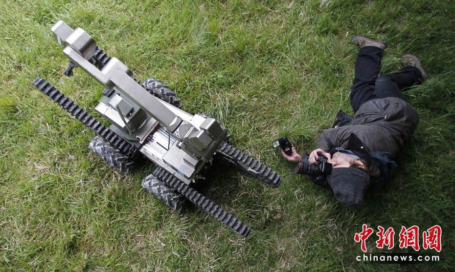 當(dāng)?shù)貢r(shí)間5月18日,德國(guó)南部哈默爾堡舉行了歐洲軍用機(jī)器人大賽。歐洲各國(guó)軍用機(jī)器人在大賽上一展身手。圖片來源:中國(guó)新聞網(wǎng)