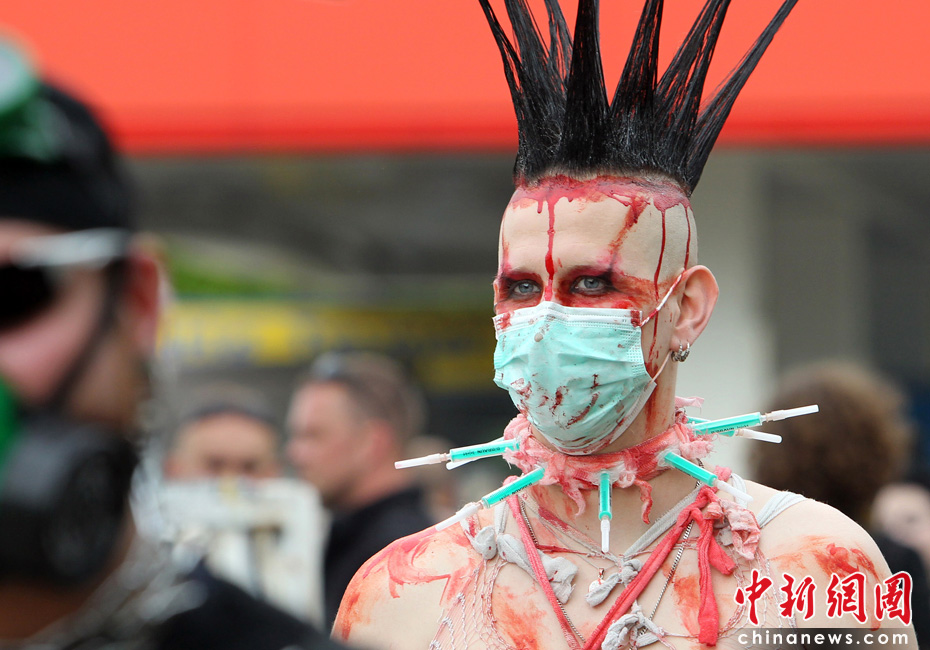 5月21日,德國萊比錫一年一度的哥特藝術節開幕。哥特節為哥特浪漫主義愛好者提供哥特式的音樂會、展覽、聚會等活動,約有2萬人參加了今年的哥特節。圖片來源:中國新聞網