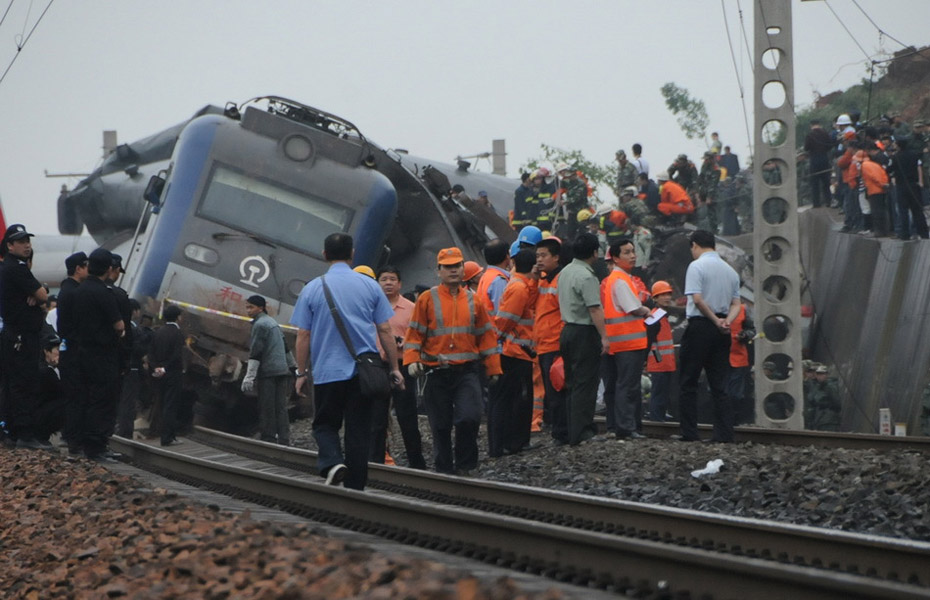 5月23日,2時10分,因連日降雨造成山體滑坡掩埋線路,由上海南開往桂林的K859次(編組17輛)旅客列車,運行至江西省境內滬昆鐵路余江至東鄉間(K699+700米處),發生脫線事故,機車及機后第1至9位車輛脫線,中斷上下行線路行車。目前,初步確認3人死亡、10人受傷。事故正在進一步清理中。(圖片來源:新華網)