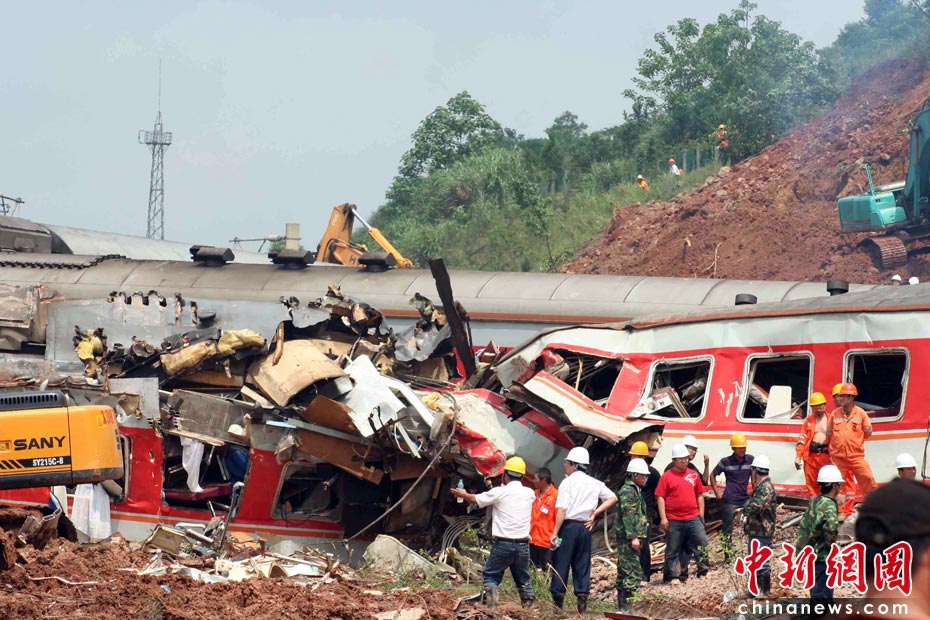 中新網(wǎng)東鄉(xiāng)5月23日電(艾永全 何柳斌 劉占昆)23日下午14時,距離滬昆鐵路客運列車脫線事發(fā)已經(jīng)12小時,武警、消防、醫(yī)護、交警、特警仍在事故現(xiàn)場緊急救援。 艾永全 攝