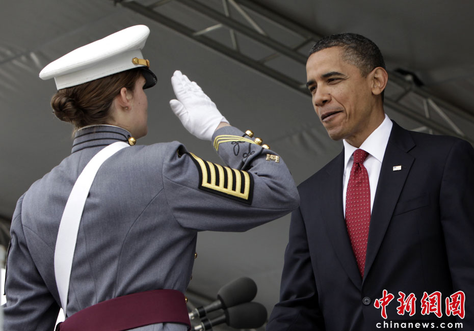 5月22日,美國紐約州北部哈德遜河西岸西點鎮(zhèn)的西點軍校舉行2010年度畢業(yè)典禮,美國總統(tǒng)奧巴馬出席典禮。本屆共有1002名學員獲得理學學士學位,并被授予陸軍少尉軍銜。圖片來源:中國新聞網