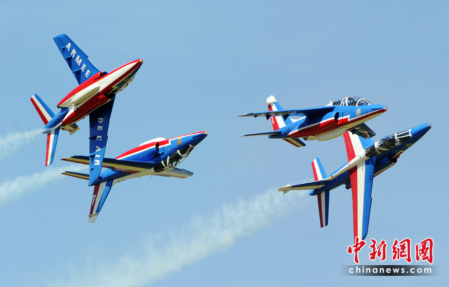 5月25日,法國巡邏兵特技飛行表演隊在普羅旺斯地區進行驚險的飛行表演。