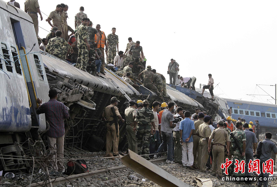 當?shù)貢r間5月28日,印度一列特快列車在東部西孟加拉邦的西米德納布爾遭反政府武裝襲擊脫軌,造成百余人死傷。圖片來源:中國新聞網(wǎng)