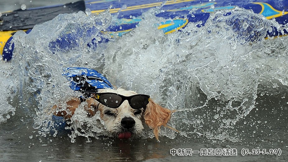 5月22日,美國加利福尼亞州圣迭戈舉行了一場妙趣橫生的狗狗沖浪比賽。圖片來源:中國新聞網(wǎng)>>點擊觀看詳細內(nèi)容