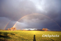 草原現罕見雙彩虹