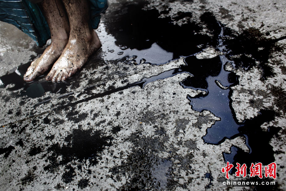 5月28日,美國(guó)環(huán)保主義者在紐約曼哈頓的一家加油站前,身上涂灑黑色顏料,以此抗議墨西哥灣原油不斷泄露。